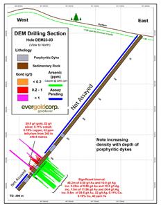 Figure 2: Section view, previously released drill hole DEM23-03